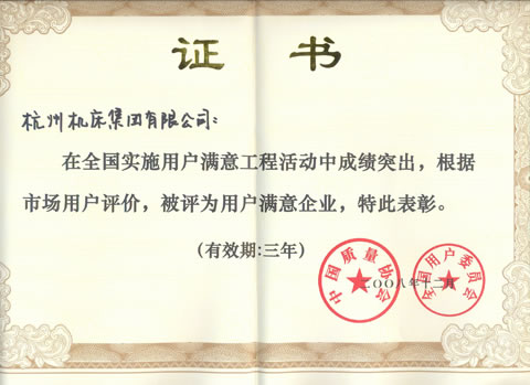 近(jìn)召開的全國用戶(hù)工作會議暨實施(shi)用戶滿意工程推(tuī)進大會上,杭州機(jī)床集團有限公司(si)被評爲2008年全國㊙️實(shi)施用戶🈲滿意工程(cheng)先進單位,此次獲(huo)得這項榮譽的❤️有(yǒu)80餘家企業,其🙇♀️中機(ji)床行業隻有杭機(ji)集團一家入選。