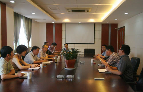 圖爲(wei)臨安市吳(wú)春法副市(shì)長(左三)一(yī)行在聽取(qǔ)公司領導(dao)彙🛀報