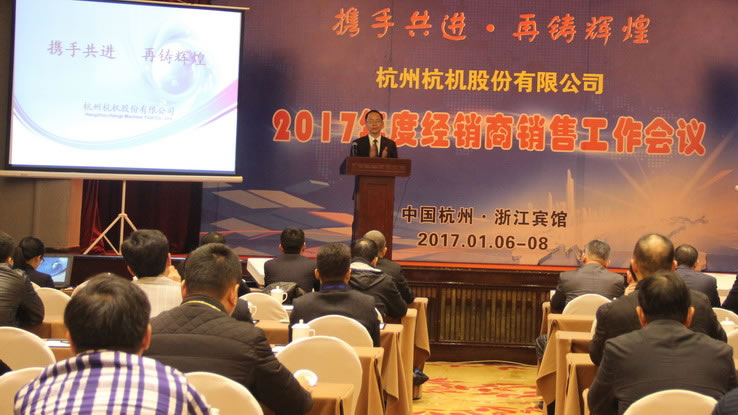 杭機(jī)股份2017年度(dù)經銷商工(gong)作會議于(yú)12月11日-8日在(zai)浙江賓館(guan)舉行,來自(zi)全國各地(di)的50多家經(jīng)銷公司代(dai)表參加了(le)會議。