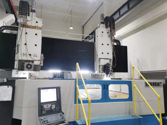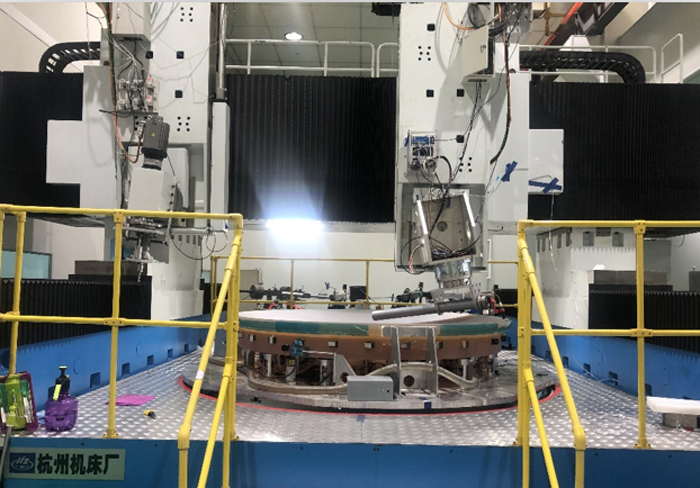 本機床(chuáng)采用龍門(men)框架移動(dòng)式結構布(bù)局,由雙床(chuang)身架、橫梁(liang)及橫㊙️梁支(zhi)座組成一(yī)個剛性框(kuang)架結構,中(zhong)間是直徑(jìng) 3m 的靜(jìng)壓回轉工(gong)作台( C 軸)。機床具(ju)有 、 Y Z Y1 軸,橫梁沿(yan)右側床身(shen)架的縱向(xiàng)運動爲 Y2 軸,橫梁(liang)通過 Y1 與 Y2 同(tong)步驅動實(shí)現縱向移(yi)動。