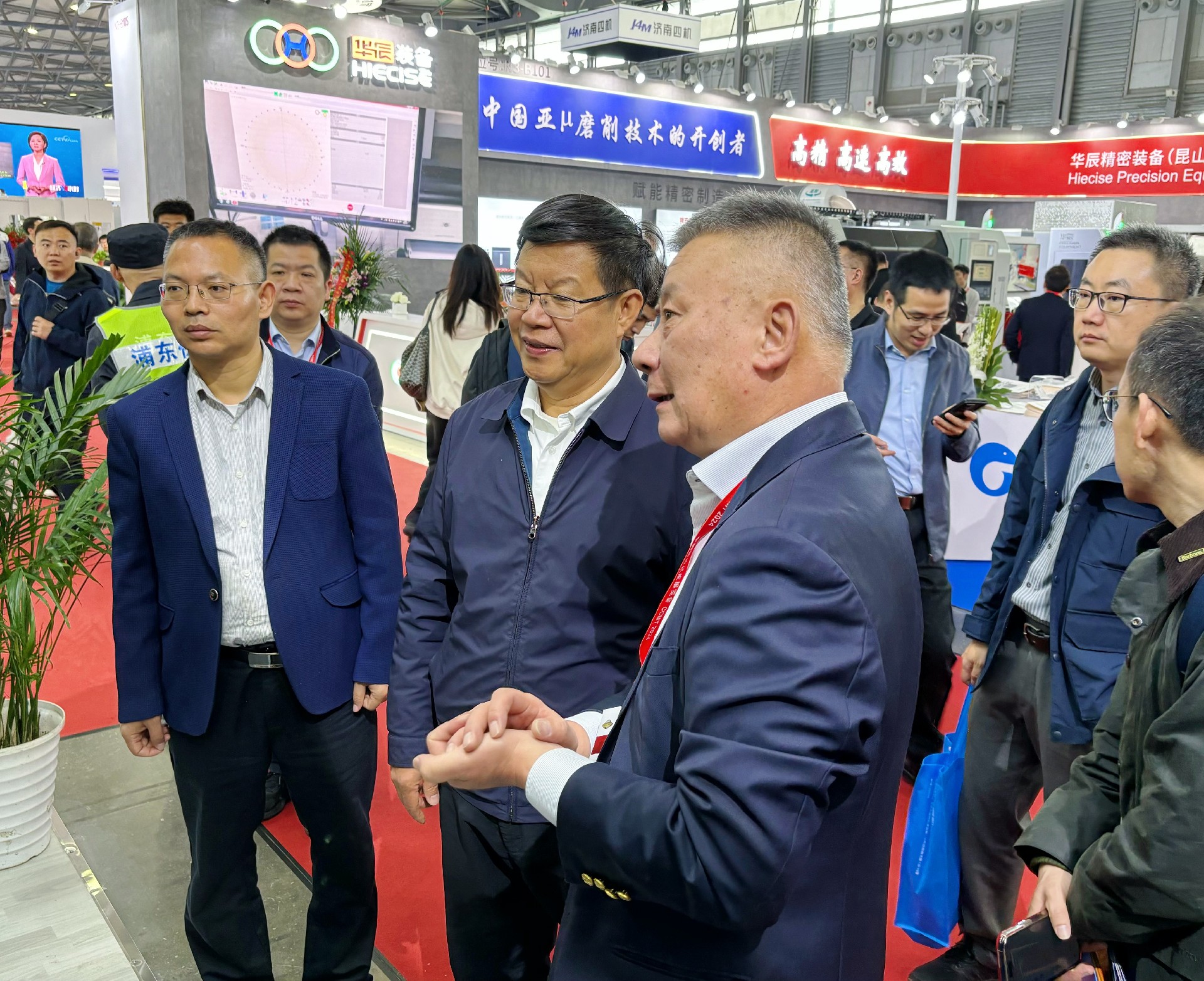 4 月(yuè) 9 日上午,國(guó)家工信部裝備(bei)一司通用處處(chu)長唐軍一行來(lai)到杭機股份展(zhan)台考察指導,唐(táng)軍處長在進一(yi)✨步了解杭機本(běn)次展品後,表達(da)了認可和高度(du)關注,他表示要(yào)聚焦🈲主業,加大(dà)産品研發力度(du),以科技研發展(zhǎn)帶動☂️企業發展(zhǎn)。